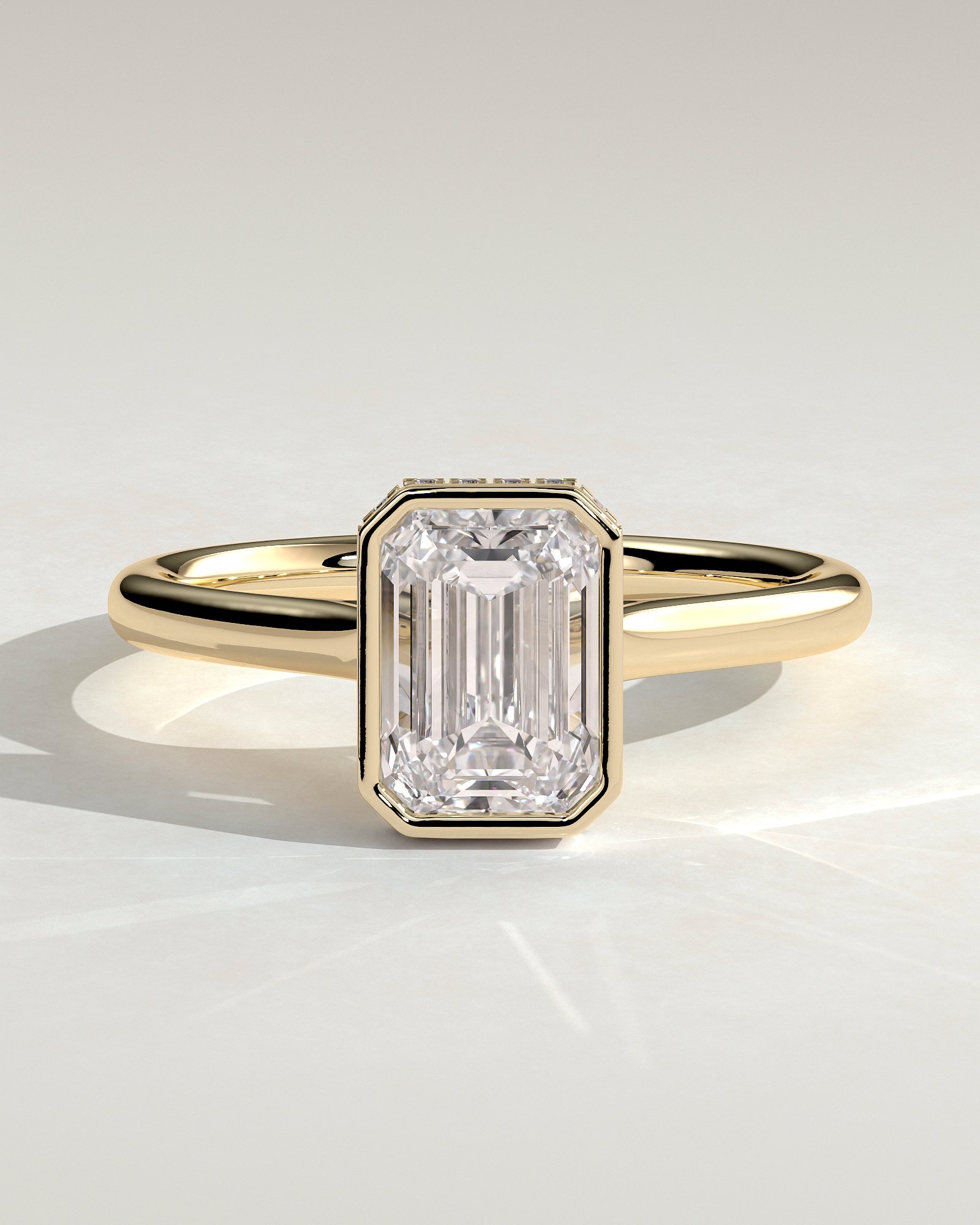 Emerald Bezel Solitaire with Hidden Halo Engagement Ring