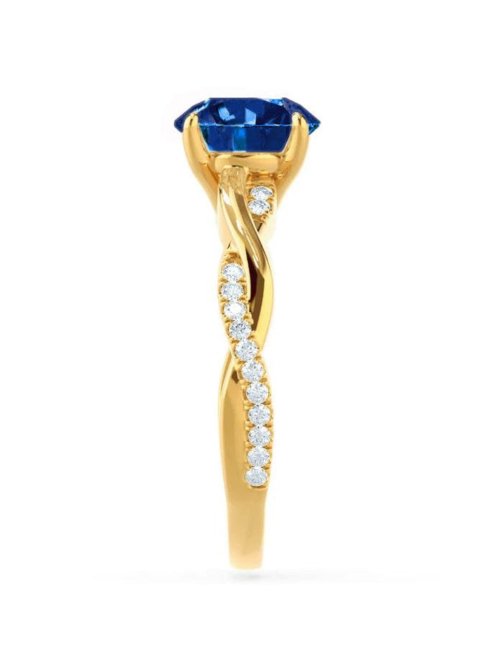 Round Blue Sapphire & Diamond Vine Engagement Ring