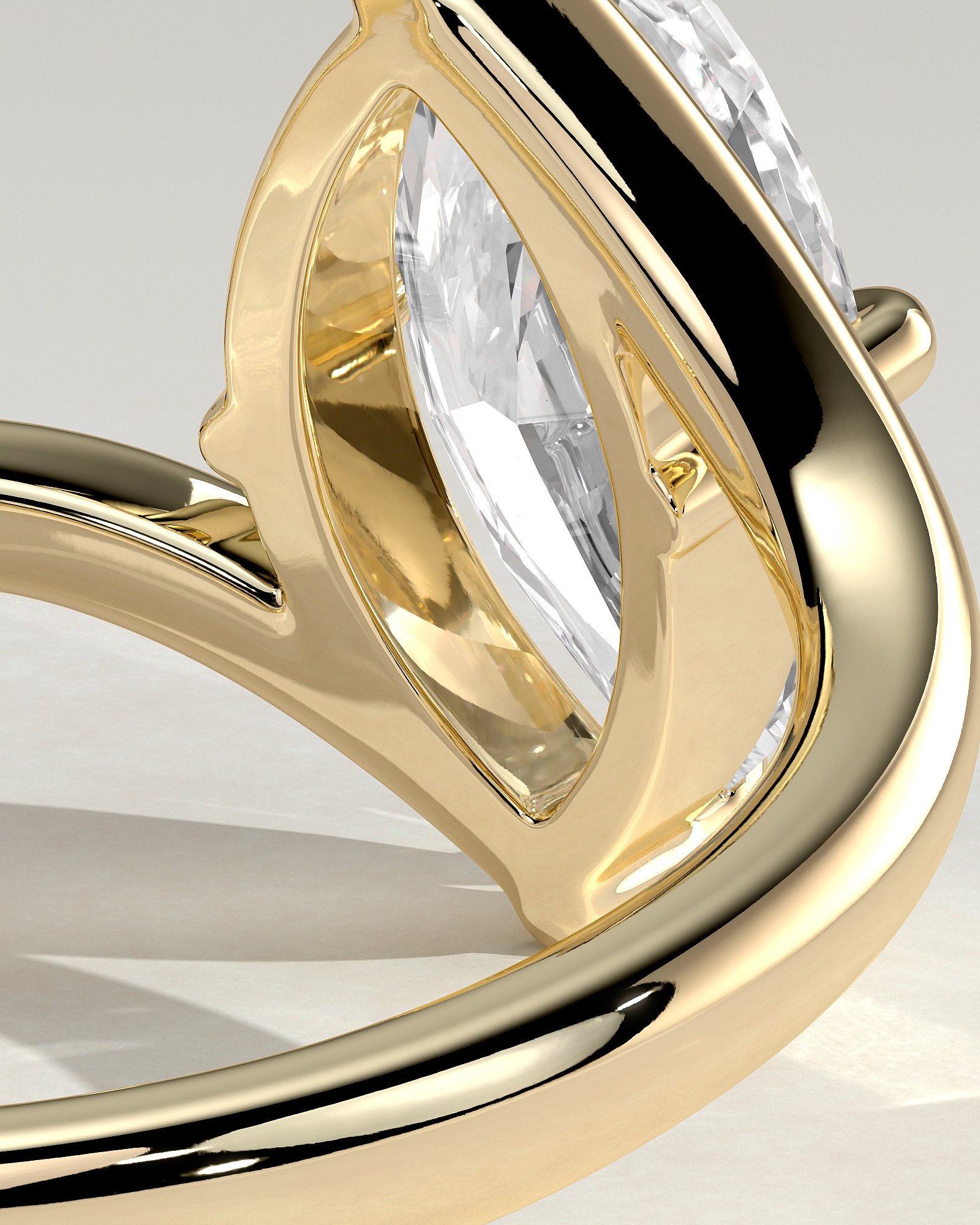 Sena features a marquise center Lab grown Diamond stone framed by an open bypass band. Subtle outward curves follow and contrast the stone’s shape, giving the design a sense of movement and quiet structure.