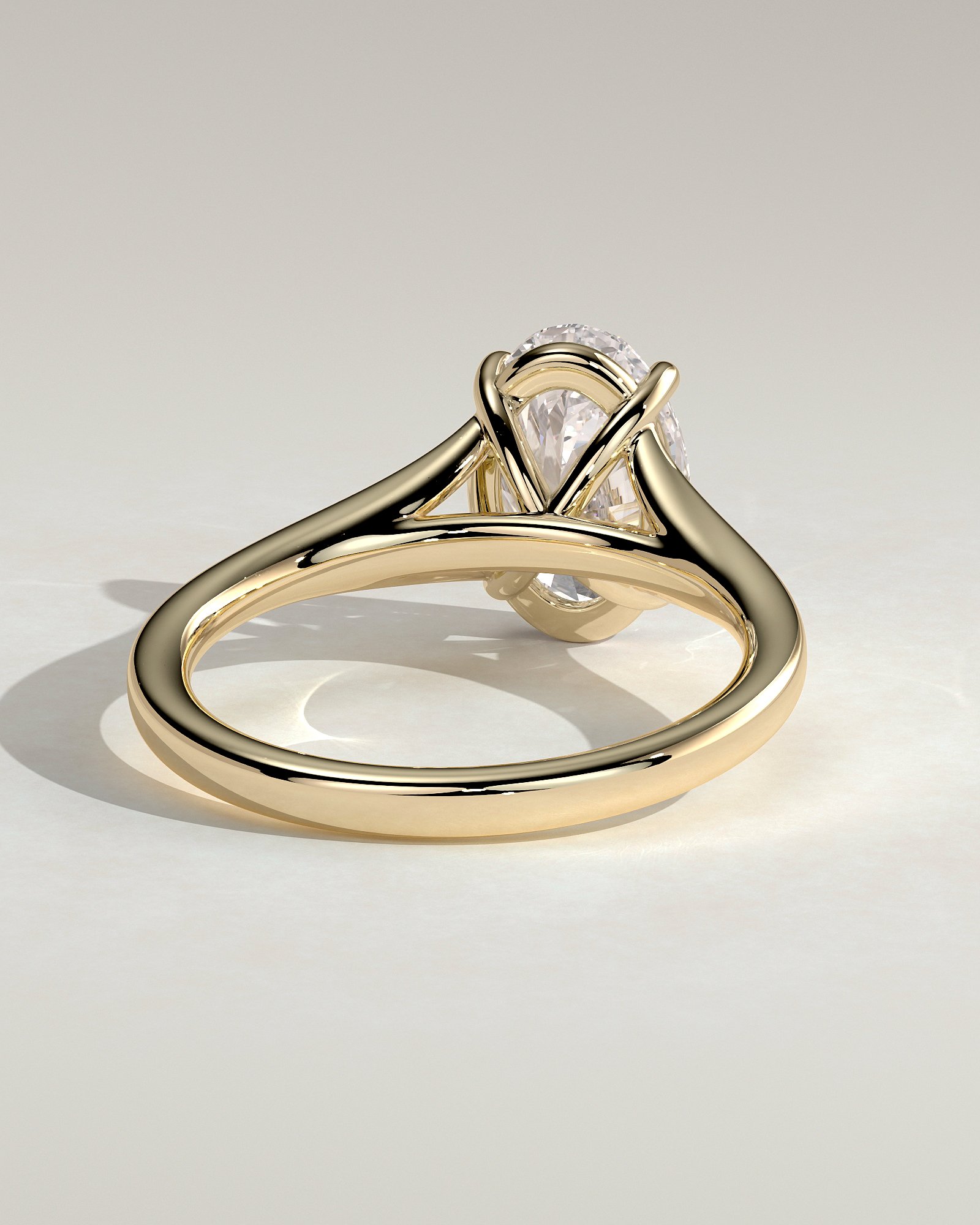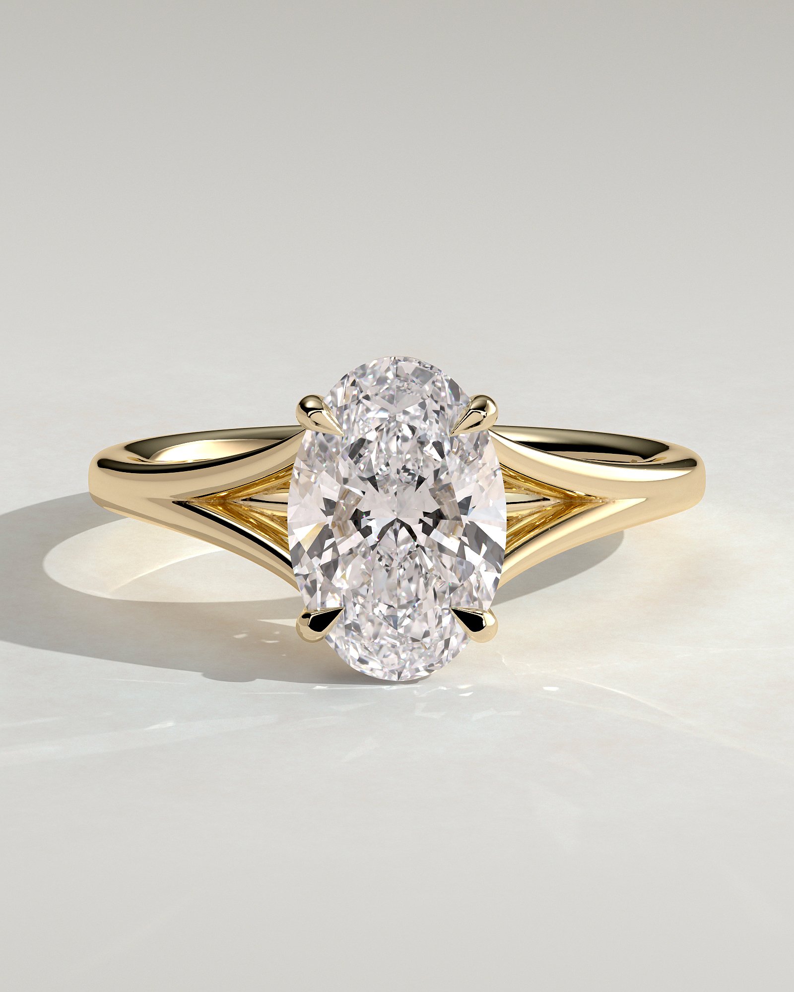This beautiful and elegant engagement ring adds a distinct quality to the classic oval solitaire design with a uniquely divergent band seated within a cathedral 4-claw setting. Every angle of this ring tells a story of balance and precision. Carefully crafted to enhance brilliance while maintaining timeless appeal, it’s a piece that feels as relevant today as it will decades from now.