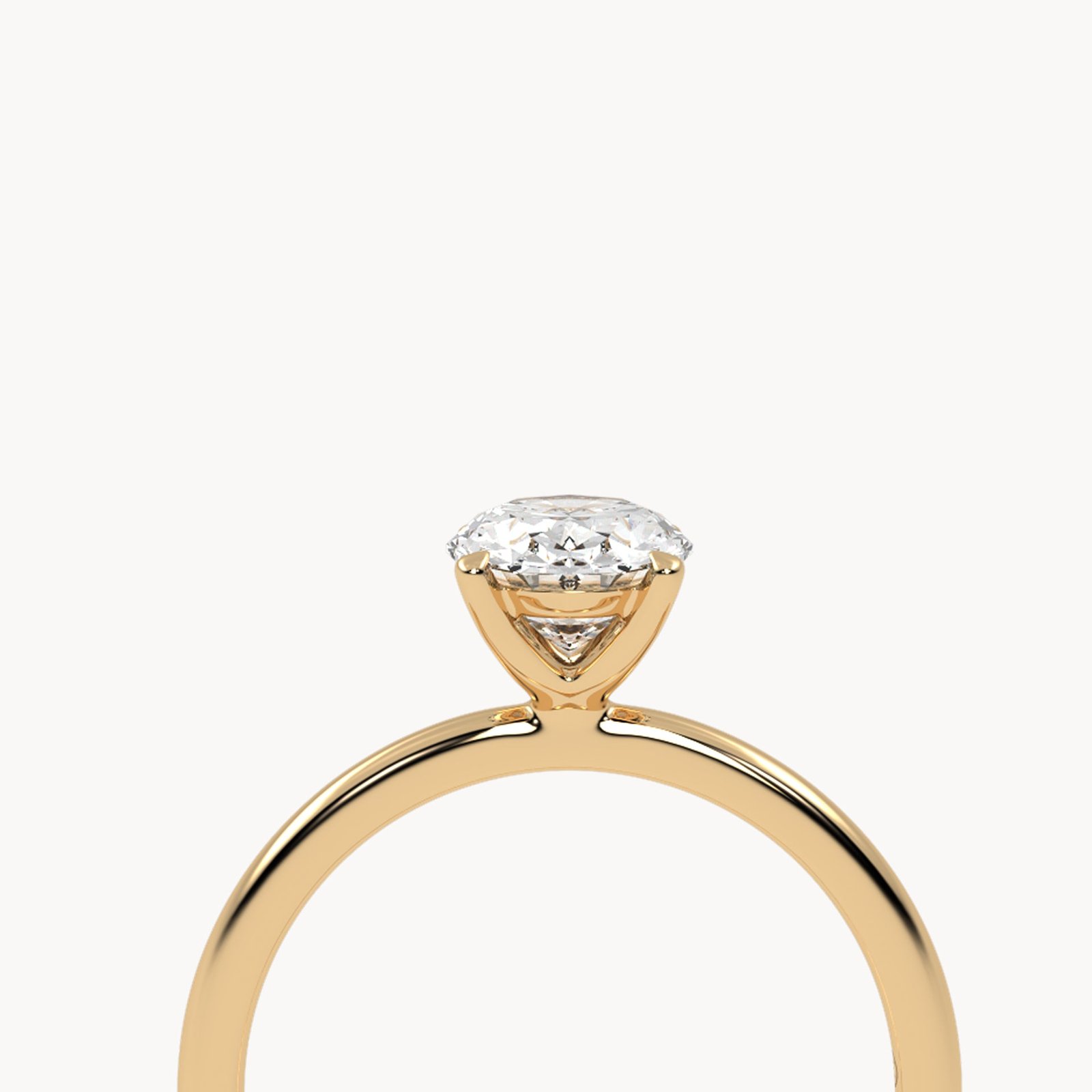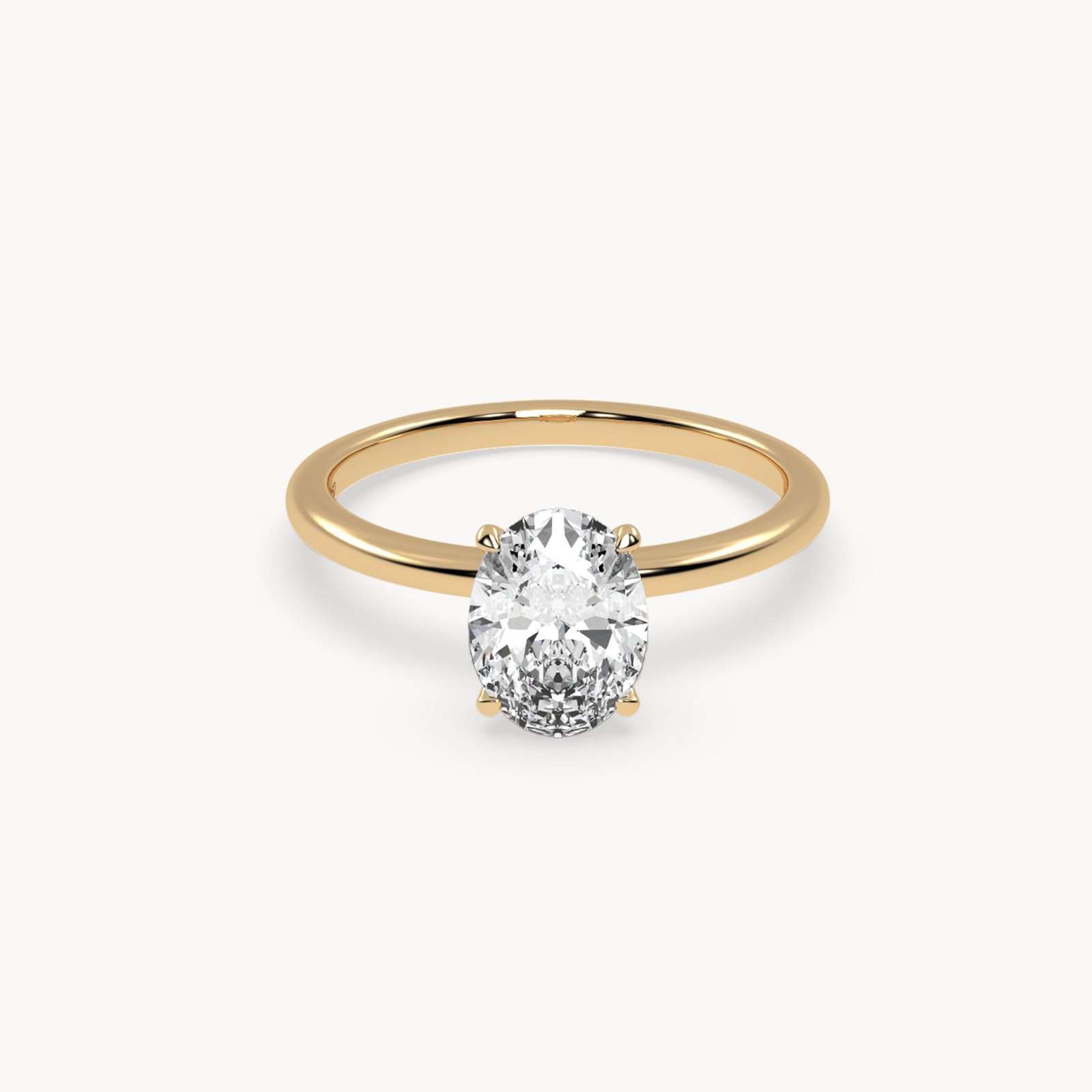 A Stunning Oval diamond center stone set on a classic 18K Gold, Rose gold or White gold Band. The simple setting enhances a diamond’s natural beauty and brilliance, without distraction, and promises to be a timeless fine jewellery design. This engagement ring combines romantic artistry with timeless elegance, making it perfect for everyday wear or a special occasion.