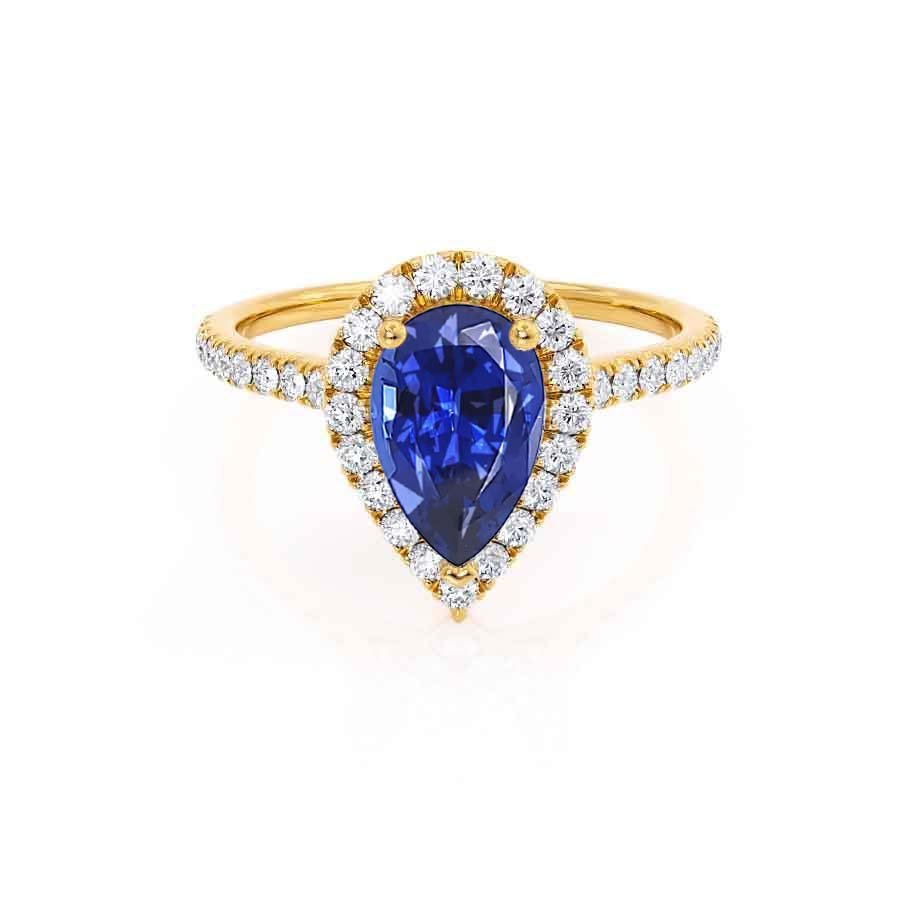 Pear Blue Sapphire & Diamond Halo Setting Engagement Ring