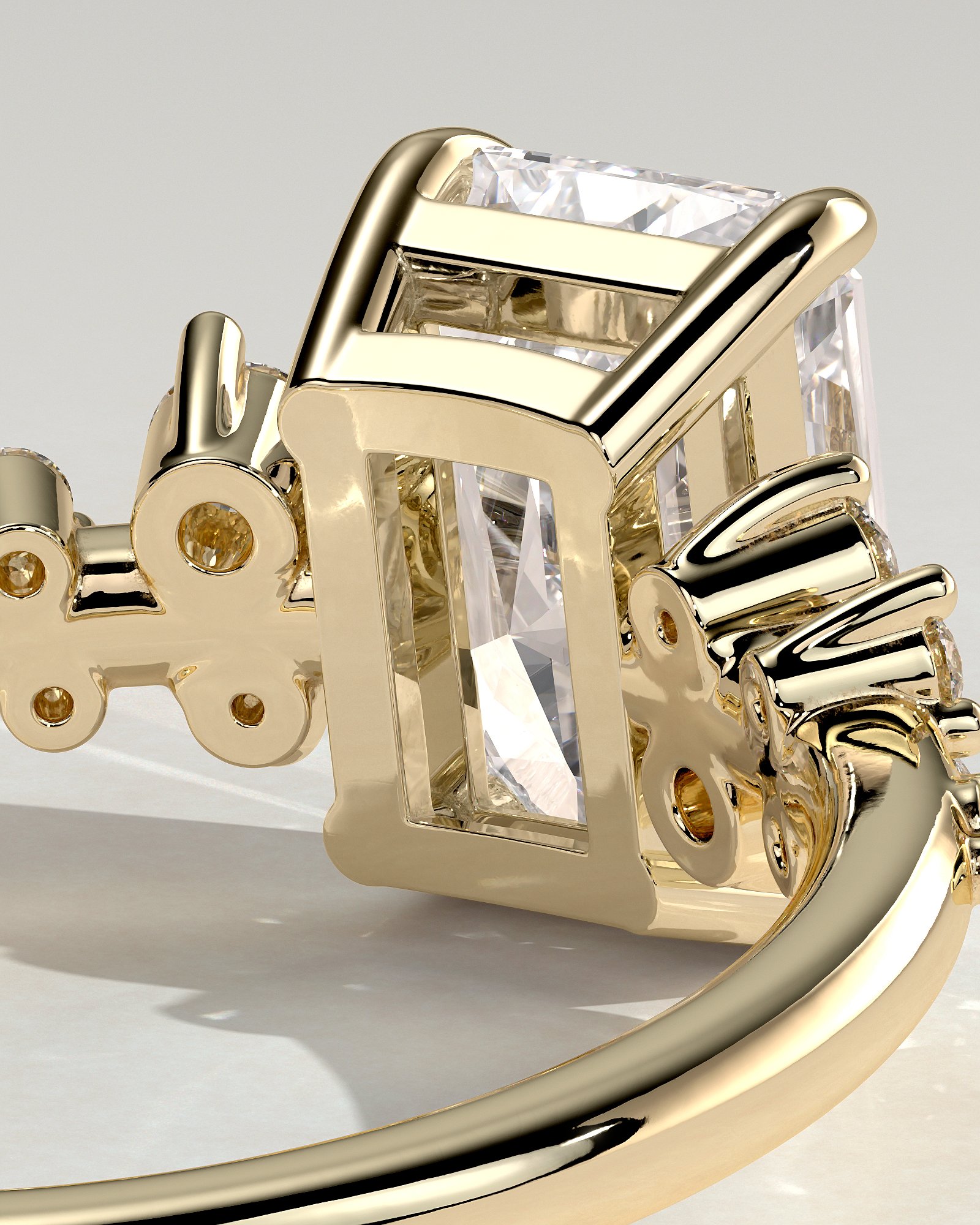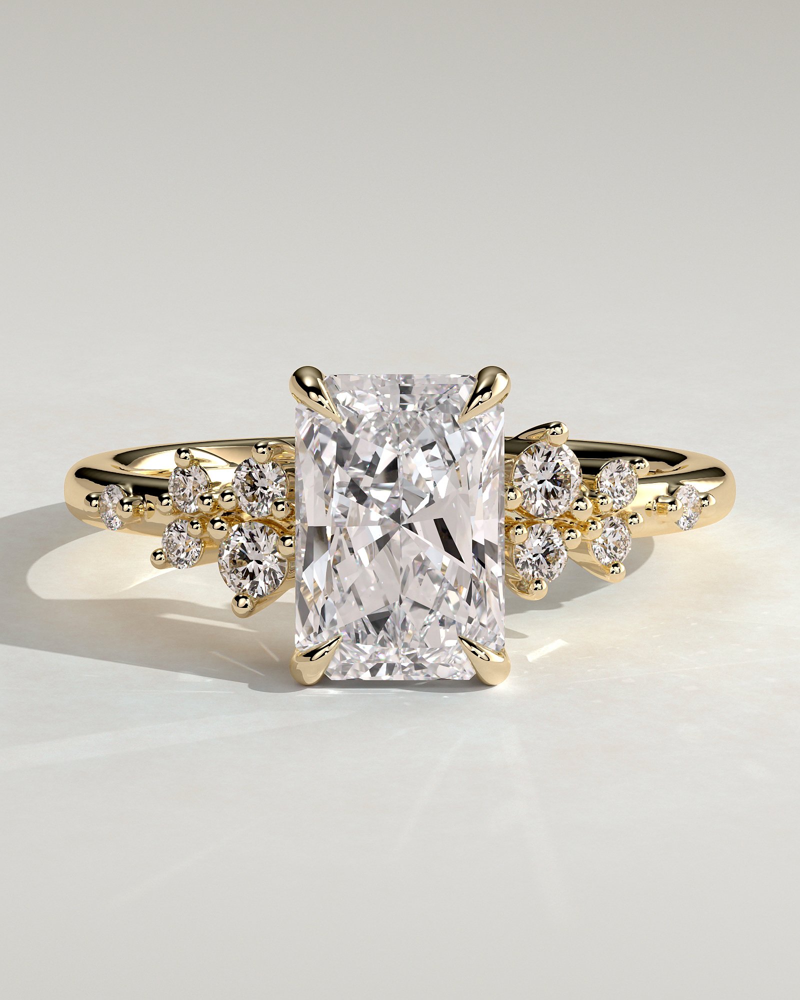 Radiant 4 Claw Solitaire Clustered Engagement Ring
