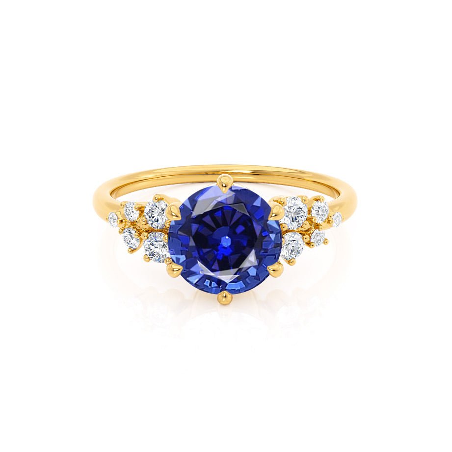 Round Blue Sapphire Starburst Cluster Shoulder Set Engagement Ring