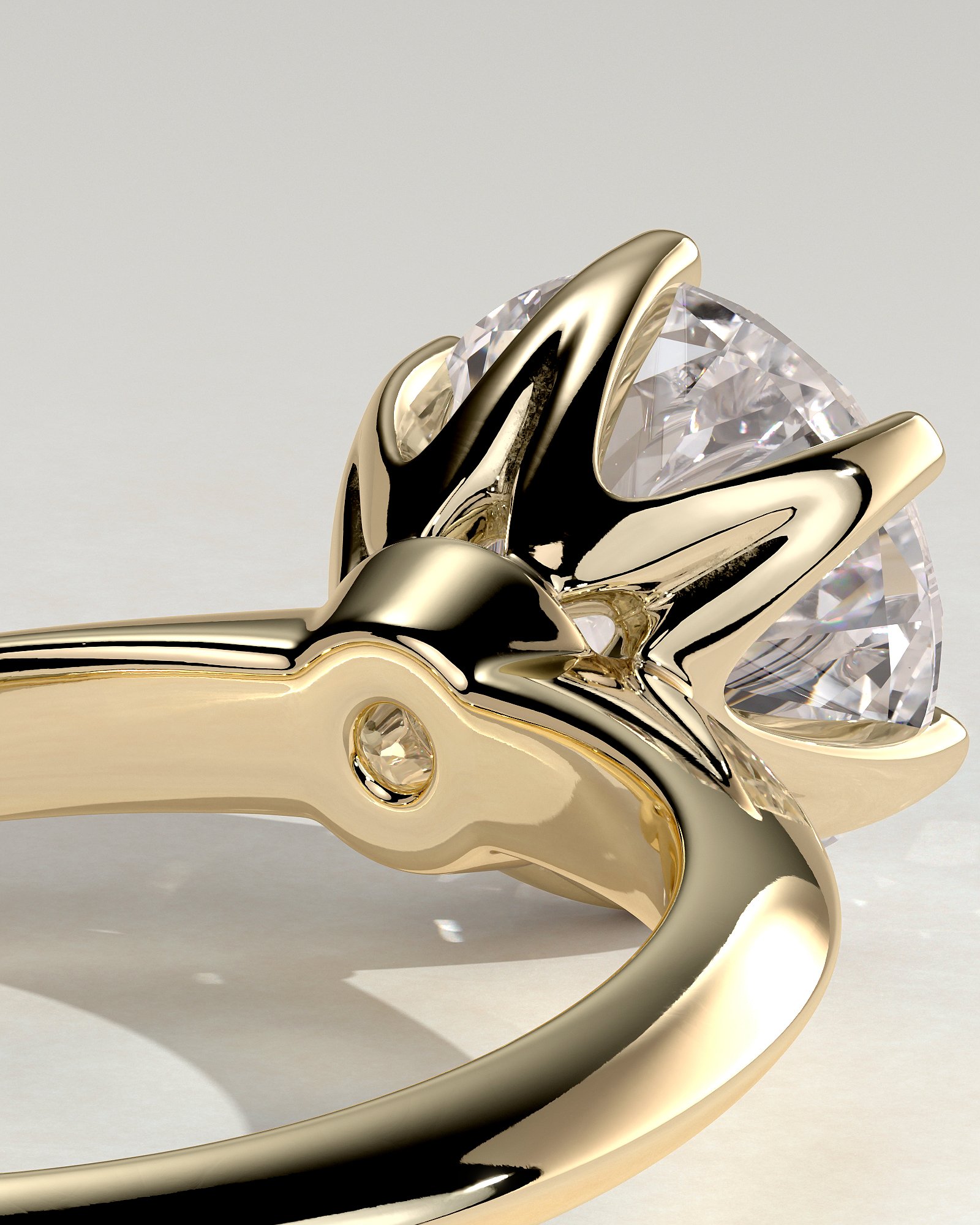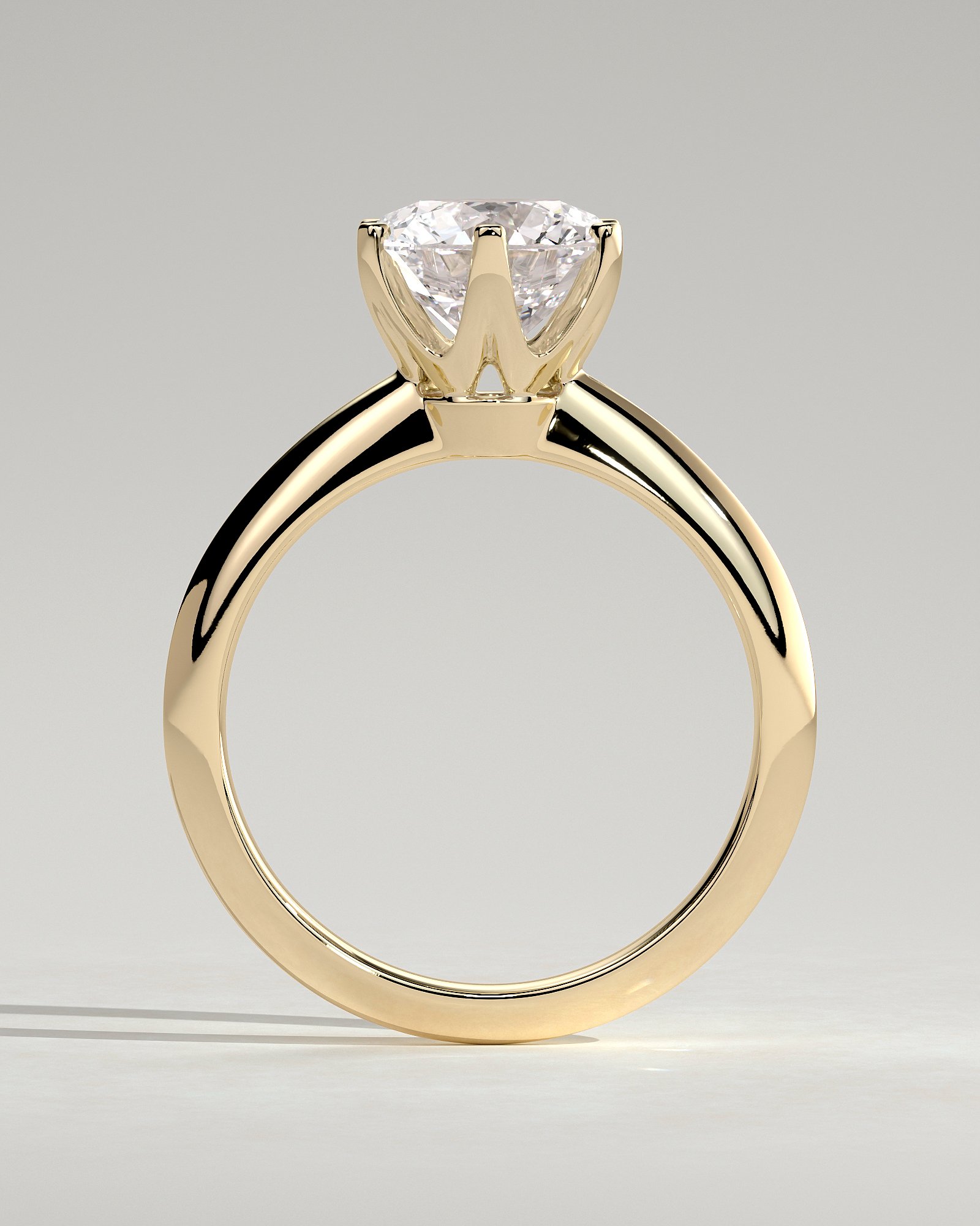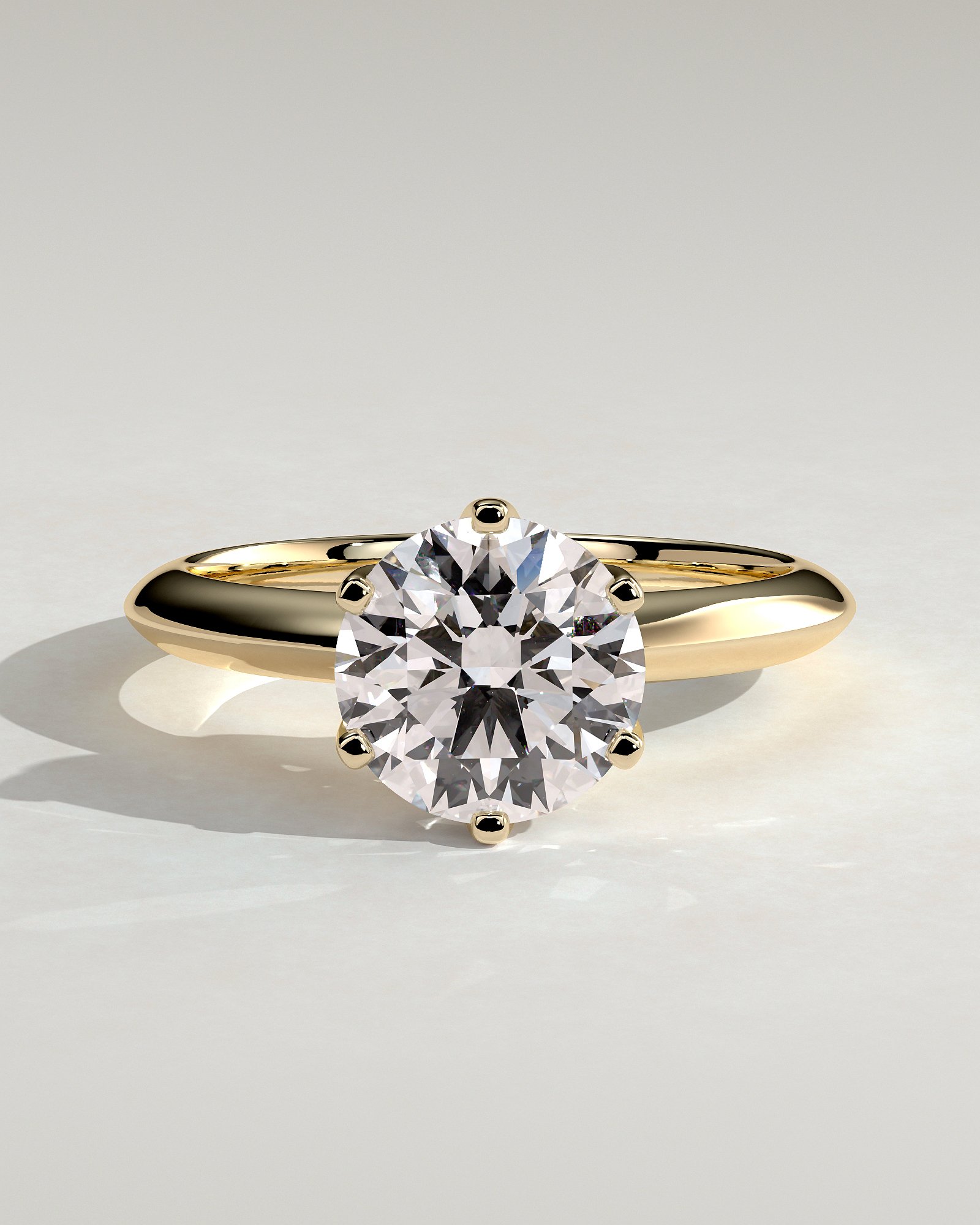 Arguably the most iconic solitaire design in history, this stunning engagement ring features a round cut center stone, high-set 6-claw setting and knife-edge band. A ring designed to speak without words. Every facet catches the light, every curve shaped with intention.